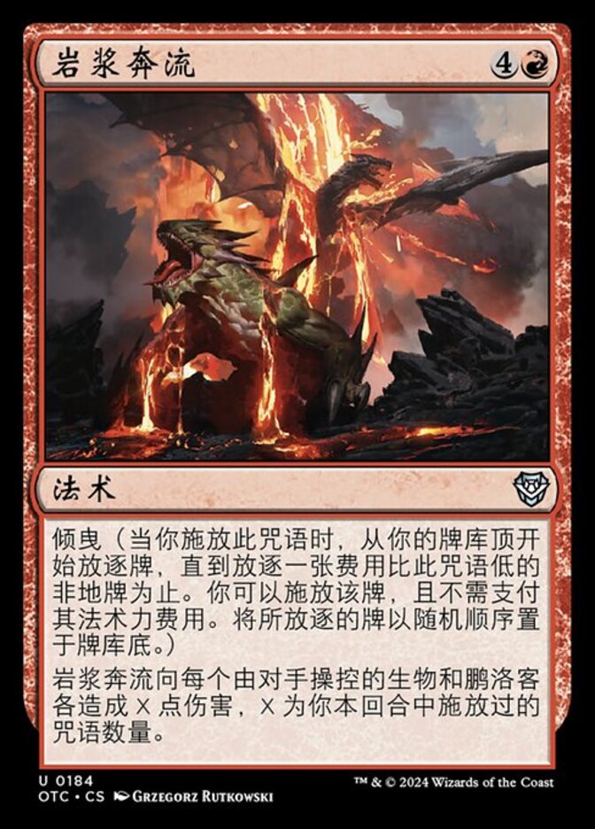 | Rules | Cascade (When you cast this spell, exile cards from the top of your library until you exile a nonland card that costs less. You may cast it without paying its mana cost. Put the exiled cards on the bottom of your library in a random order.) Volcanic Torrent deals X damage to each creature and planeswalker your opponents control, where X is the number of spells you've cast this turn. |