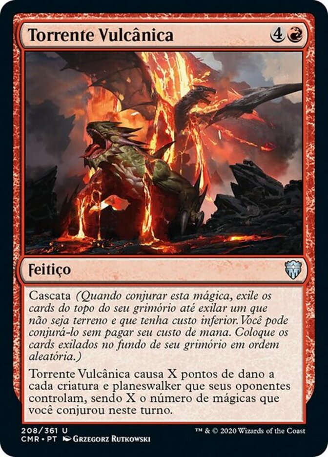 | Rules | Cascade (When you cast this spell, exile cards from the top of your library until you exile a nonland card that costs less. You may cast it without paying its mana cost. Put the exiled cards on the bottom of your library in a random order.) Volcanic Torrent deals X damage to each creature and planeswalker your opponents control, where X is the number of spells you've cast this turn. |