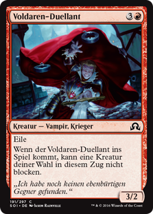| Rules | Haste When Voldaren Duelist enters the battlefield, target creature can't block this turn. |