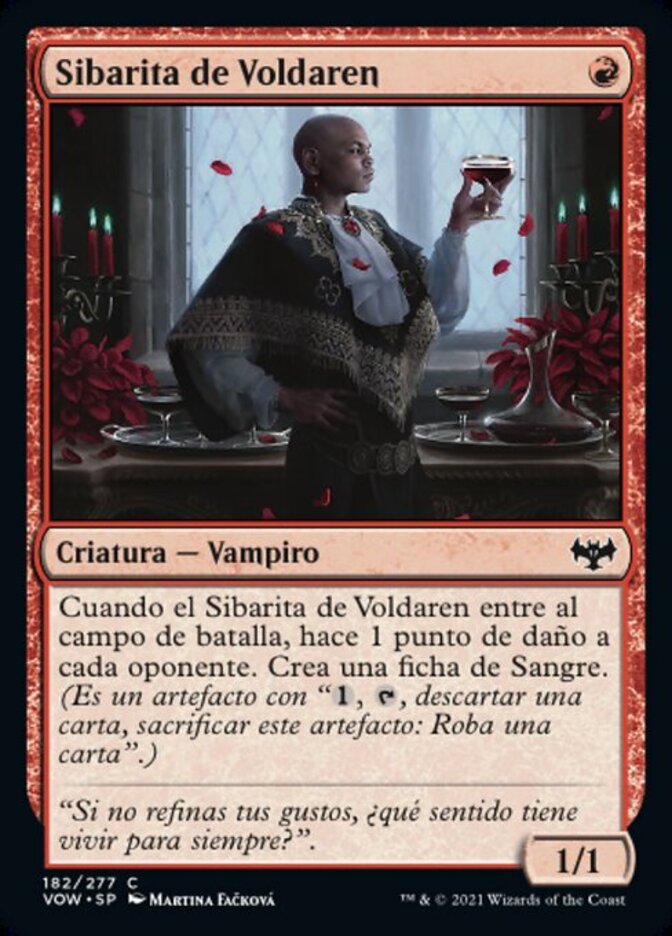 | Rules | When Voldaren Epicure enters the battlefield, it deals 1 damage to each opponent. Create a Blood token. (It's an artifact with ", , Discard a card, Sacrifice this artifact: Draw a card.") |