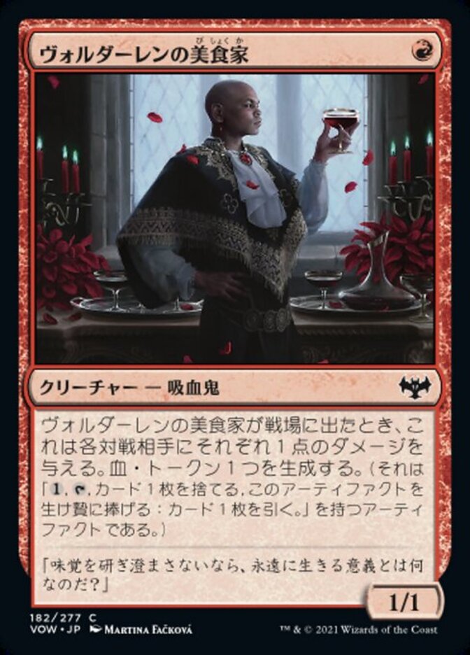 | Rules | When Voldaren Epicure enters the battlefield, it deals 1 damage to each opponent. Create a Blood token. (It's an artifact with ", , Discard a card, Sacrifice this artifact: Draw a card.") |
