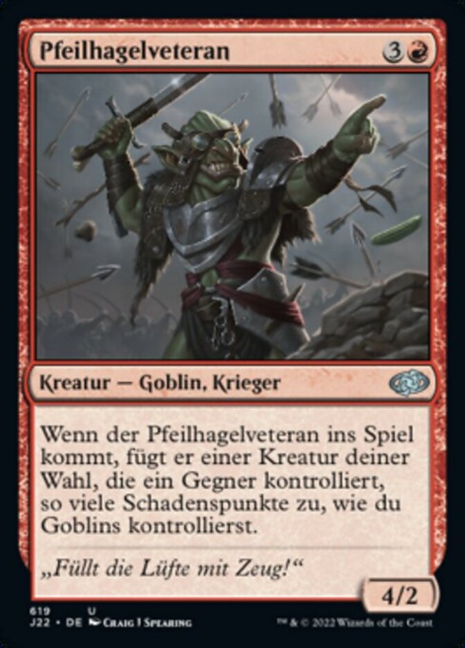 | Rules | When Volley Veteran enters the battlefield, it deals damage to target creature an opponent controls equal to the number of Goblins you control. |