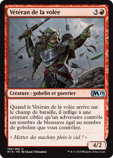 | Rules | When Volley Veteran enters the battlefield, it deals damage to target creature an opponent controls equal to the number of Goblins you control. |