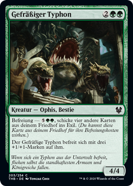 | Rules | Escape—, Exile four other cards from your graveyard. (You may cast this card from your graveyard for its escape cost.) Voracious Typhon escapes with three +1/+1 counters on it. |