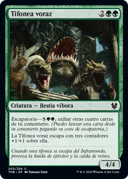 | Rules | Escape—, Exile four other cards from your graveyard. (You may cast this card from your graveyard for its escape cost.) Voracious Typhon escapes with three +1/+1 counters on it. |