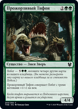 Voracious Typhon escapes with three +1/+1 counters on it.