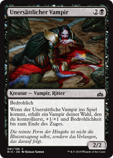 | Rules | Menace When Voracious Vampire enters the battlefield, target Vampire you control gets +1/+1 and gains menace until end of turn. |
