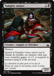| Rules | Menace When Voracious Vampire enters the battlefield, target Vampire you control gets +1/+1 and gains menace until end of turn. |