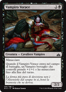 | Rules | Menace When Voracious Vampire enters the battlefield, target Vampire you control gets +1/+1 and gains menace until end of turn. |