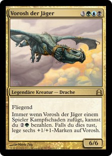 | Rules | Flying Whenever Vorosh, the Hunter deals combat damage to a player, you may pay . If you do, put six +1/+1 counters on Vorosh. |