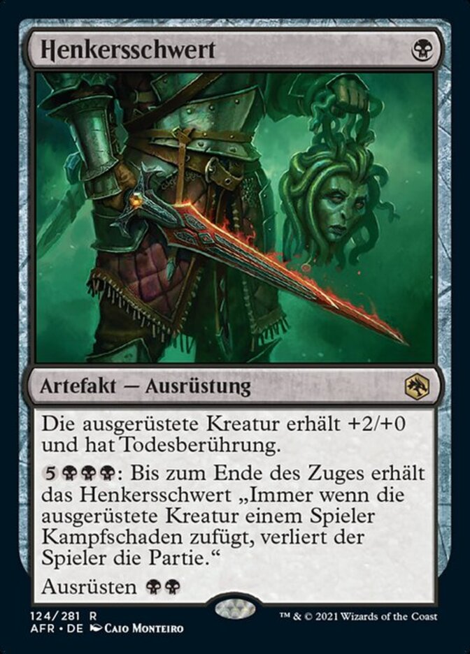| Rules | Equipped creature gets +2/+0 and has deathtouch. : Until end of turn, Vorpal Sword gains "Whenever equipped creature deals combat damage to a player, that player loses the game." Equip |