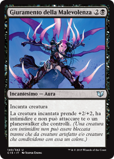 | Rules | Enchant creature Enchanted creature gets +2/+2, has intimidate, and can't attack you or planeswalkers you control. (A creature with intimidate can't be blocked except by artifact creatures and/or creatures that share a color with it.) |