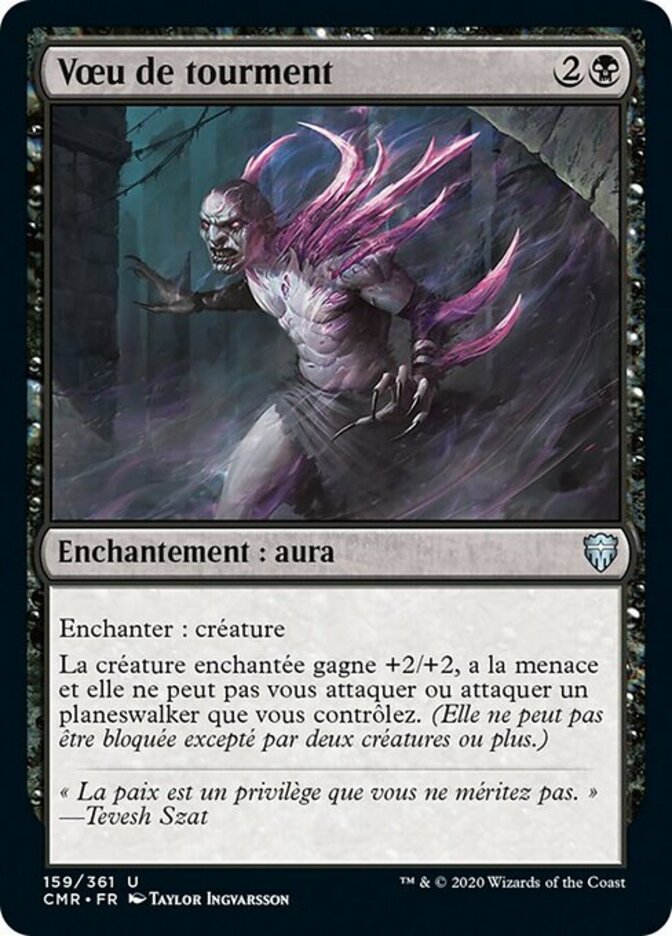 | Rules | Enchant creature Enchanted creature gets +2/+2, has menace, and can't attack you or planeswalkers you control. (It can't be blocked except by two or more creatures.) |