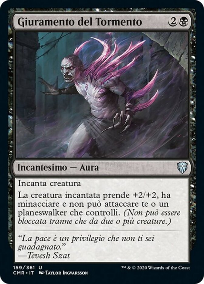 | Rules | Enchant creature Enchanted creature gets +2/+2, has menace, and can't attack you or planeswalkers you control. (It can't be blocked except by two or more creatures.) |