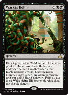 | Rules | Target opponent loses 4 life. You may search your library and/or graveyard for a card named Vraska, Scheming Gorgon, reveal it, and put it into your hand. If you search your library this way, shuffle. |