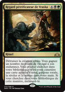 Rules Destroy target creature. You gain life equal to its toughness. You may search your library and/or graveyard for a card named Vraska, Regal Gorgon, reveal it, and put it into your hand. If you search your library this way, shuffle.