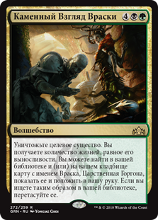 | Rules | Destroy target creature. You gain life equal to its toughness. You may search your library and/or graveyard for a card named Vraska, Regal Gorgon, reveal it, and put it into your hand. If you search your library this way, shuffle. |