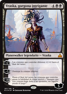 | Rules | +2: Creatures you control get +1/+0 until end of turn. −3: Destroy target creature. −10: Until end of turn, creatures you control gain deathtouch and "Whenever this creature deals damage to an opponent, that player loses the game." |
