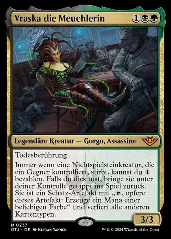 | Rules | Deathtouch Whenever a nontoken creature an opponent controls dies, you may pay . If you do, return that card to the battlefield tapped under your control. It's a Treasure artifact with ", Sacrifice this artifact: Add one mana of any color," and it loses all other card types. |