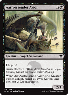 | Rules | Flying Exploit (When this creature enters the battlefield, you may sacrifice a creature.) When Vulturous Aven exploits a creature, you draw two cards and you lose 2 life. |