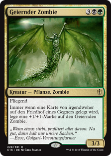 | Rules | Flying Whenever a card is put into an opponent's graveyard from anywhere, put a +1/+1 counter on Vulturous Zombie. |