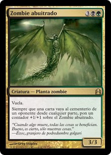 | Rules | Flying Whenever a card is put into an opponent's graveyard from anywhere, put a +1/+1 counter on Vulturous Zombie. |