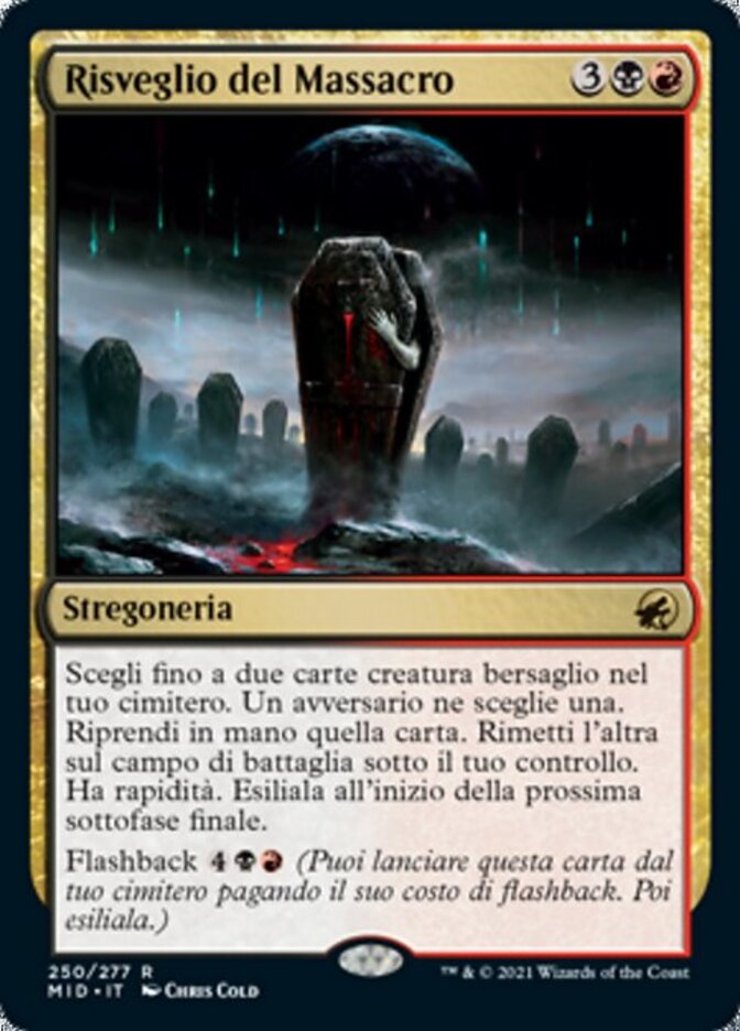 | Rules | Choose up to two target creature cards in your graveyard. An opponent chooses one of them. Return that card to your hand. Return the other to the battlefield under your control. It gains haste. Exile it at the beginning of the next end step. Flashback (You may cast this card from your graveyard for its flashback cost. Then exile it.) |