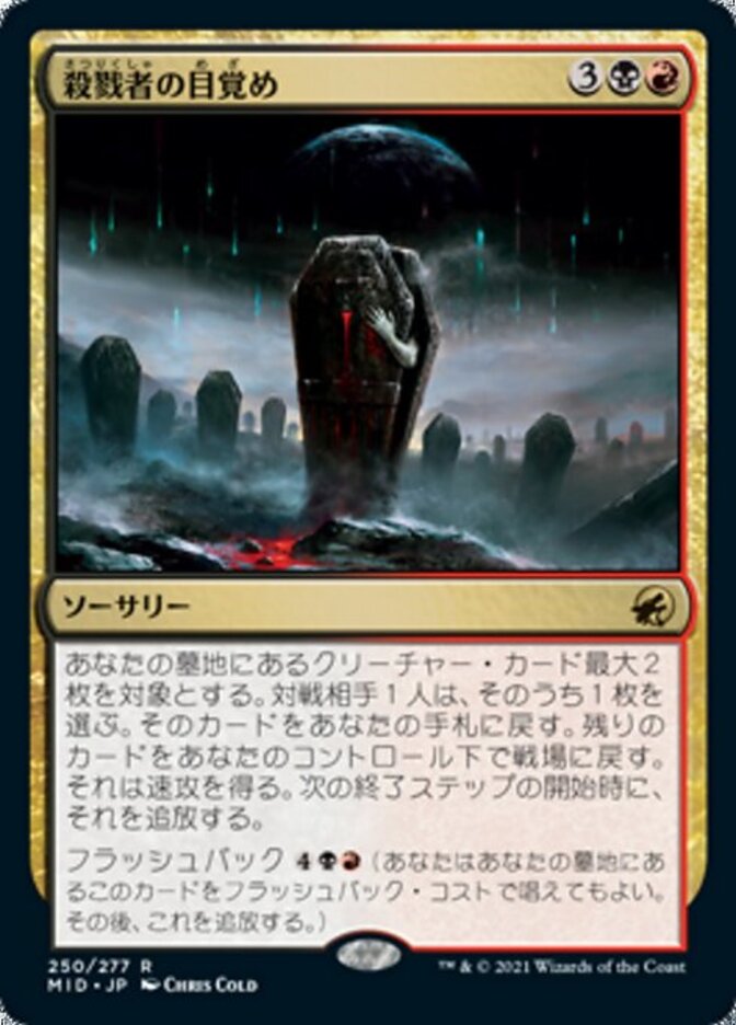 | Rules | Choose up to two target creature cards in your graveyard. An opponent chooses one of them. Return that card to your hand. Return the other to the battlefield under your control. It gains haste. Exile it at the beginning of the next end step. Flashback (You may cast this card from your graveyard for its flashback cost. Then exile it.) |