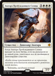 | Rules | When Wakening Sun's Avatar enters the battlefield, if you cast it from your hand, destroy all non-Dinosaur creatures. |