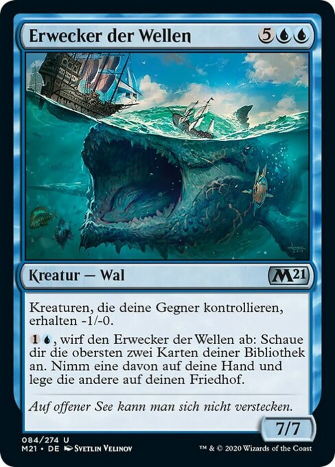 | Rules | Creatures your opponents control get -1/-0. , Discard Waker of Waves: Look at the top two cards of your library. Put one of them into your hand and the other into your graveyard. |