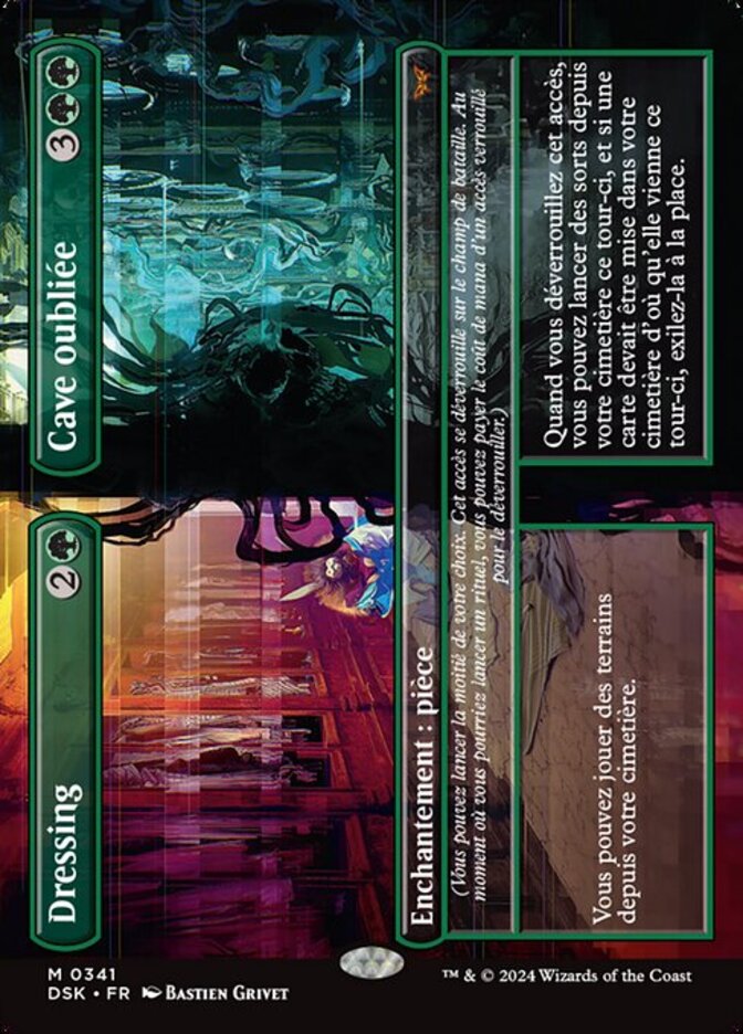 | Rules | (You may cast either half. That door unlocks on the battlefield. As a sorcery, you may pay the mana cost of a locked door to unlock it.) You may play lands from your graveyard. // (You may cast either half. That door unlocks on the battlefield. As a sorcery, you may pay the mana cost of a locked door to unlock it.) When you unlock this door, you may cast spells from your graveyard this turn, and if a card would be put into your graveyard from anywhere this turn, exile it instead. |