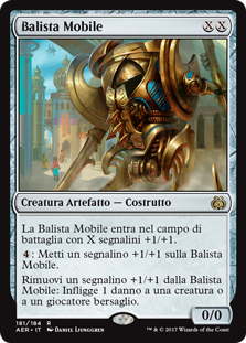 | Rules | Walking Ballista enters the battlefield with X +1/+1 counters on it. : Put a +1/+1 counter on Walking Ballista. Remove a +1/+1 counter from Walking Ballista: It deals 1 damage to any target. |