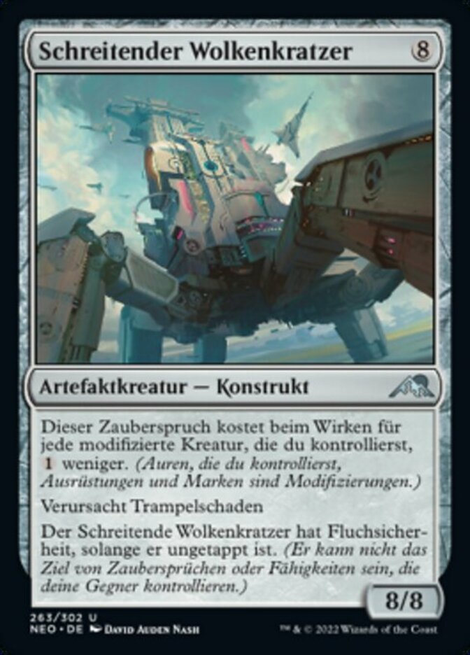 | Rules | This spell costs less to cast for each modified creature you control. (Equipment, Auras you control, and counters are modifications.) Trample Walking Skyscraper has hexproof as long as it's untapped. (It can't be the target of spells or abilities your opponents control.) |