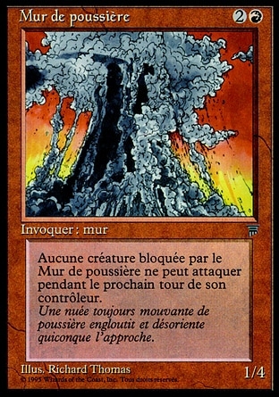 | Rules | Defender (This creature can't attack.) Whenever Wall of Dust blocks a creature, that creature can't attack during its controller's next turn. |