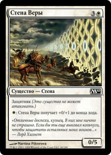 | Rules | Defender (This creature can't attack.) : Wall of Faith gets +0/+1 until end of turn. |