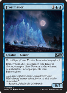 | Rules | Defender Whenever Wall of Frost blocks a creature, that creature doesn't untap during its controller's next untap step. |