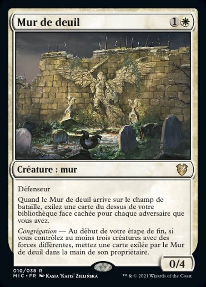 | Rules | Defender When Wall of Mourning enters the battlefield, exile a card from the top of your library face down for each opponent you have. Coven — At the beginning of your end step, if you control three or more creatures with different powers, put a card exiled with Wall of Mourning into its owner's hand. |