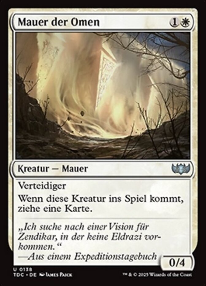 | Rules | Defender When Wall of Omens enters the battlefield, draw a card. |
