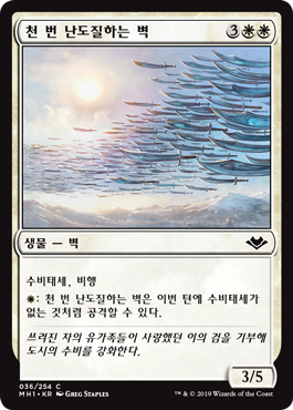| Rules | Defender, flying : Wall of One Thousand Cuts can attack this turn as though it didn't have defender. |