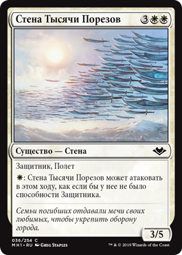 | Rules | Defender, flying : Wall of One Thousand Cuts can attack this turn as though it didn't have defender. |