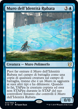 | Rules | You may have Wall of Stolen Identity enter the battlefield as a copy of any creature on the battlefield, except it's a Wall in addition to its other types and has defender. When you do, tap the copied creature and it doesn't untap during its controller's untap step for as long as you control Wall of Stolen Identity. |