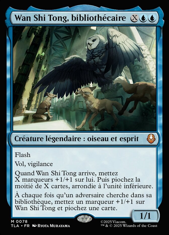 | Rules | Flash Flying, vigilance When Wan Shi Tong enters, put X +1/+1 counters on him. Then draw half X cards, rounded down. Whenever an opponent searches their library, put a +1/+1 counter on Wan Shi Tong and draw a card. |