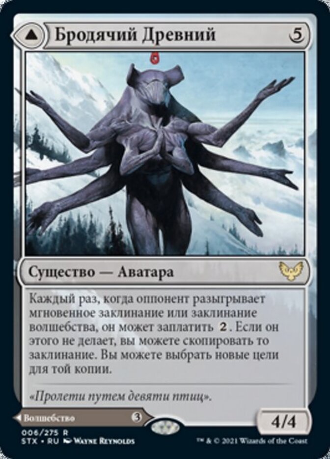 | Rules | Whenever an opponent casts an instant or sorcery spell, they may pay . If they don't, you may copy that spell. You may choose new targets for the copy. // Each player looks at the top five cards of their library and may reveal a land card and/or an instant or sorcery card from among them. Each player puts the cards they revealed this way into their hand and the rest on the bottom of their library in a random order. Each player gains 3 life. |