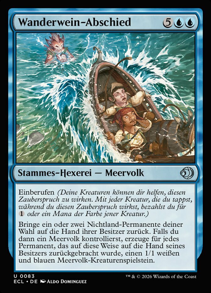 | Rules | Convoke (Your creatures can help cast this spell. Each creature you tap while casting this spell pays for or one mana of that creature's color.) Return one or two target nonland permanents to their owners' hands. Then if you control a Merfolk, create a 1/1 white and blue Merfolk creature token for each permanent returned to its owner's hand this way. |