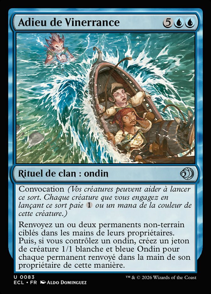 | Rules | Convoke (Your creatures can help cast this spell. Each creature you tap while casting this spell pays for or one mana of that creature's color.) Return one or two target nonland permanents to their owners' hands. Then if you control a Merfolk, create a 1/1 white and blue Merfolk creature token for each permanent returned to its owner's hand this way. |