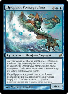 | Rules | Champion a Merfolk (When this enters the battlefield, sacrifice it unless you exile another Merfolk you control. When this leaves the battlefield, that card returns to the battlefield.) Whenever Wanderwine Prophets deals combat damage to a player, you may sacrifice a Merfolk. If you do, take an extra turn after this one. |