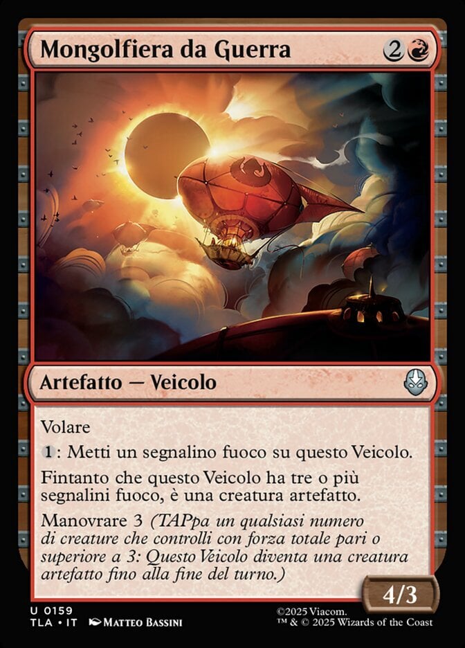 | Rules | Flying : Put a fire counter on this Vehicle. As long as this Vehicle has three or more fire counters on it, it's an artifact creature. Crew 3 (Tap any number of creatures you control with total power 3 or more: This Vehicle becomes an artifact creature until end of turn.) |