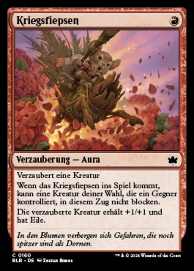 | Rules | Enchant creature When War Squeak enters, target creature an opponent controls can't block this turn. Enchanted creature gets +1/+1 and has haste. |