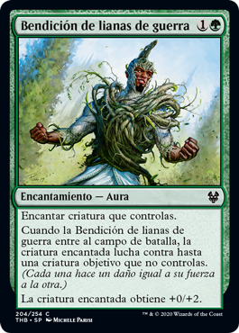 | Rules | Enchant creature you control When Warbriar Blessing enters the battlefield, enchanted creature fights up to one target creature you don't control. (Each deals damage equal to its power to the other.) Enchanted creature gets +0/+2. |