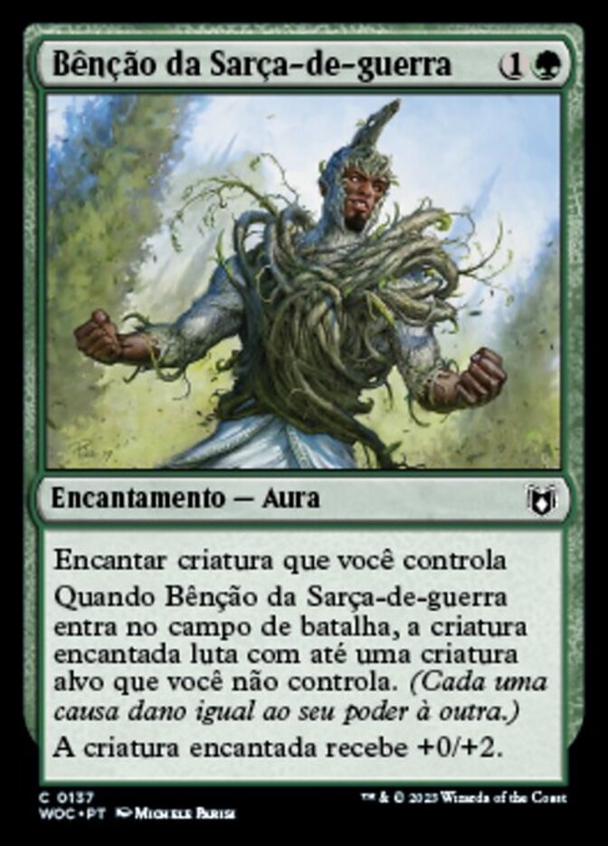 | Rules | Enchant creature you control When Warbriar Blessing enters the battlefield, enchanted creature fights up to one target creature you don't control. (Each deals damage equal to its power to the other.) Enchanted creature gets +0/+2. |